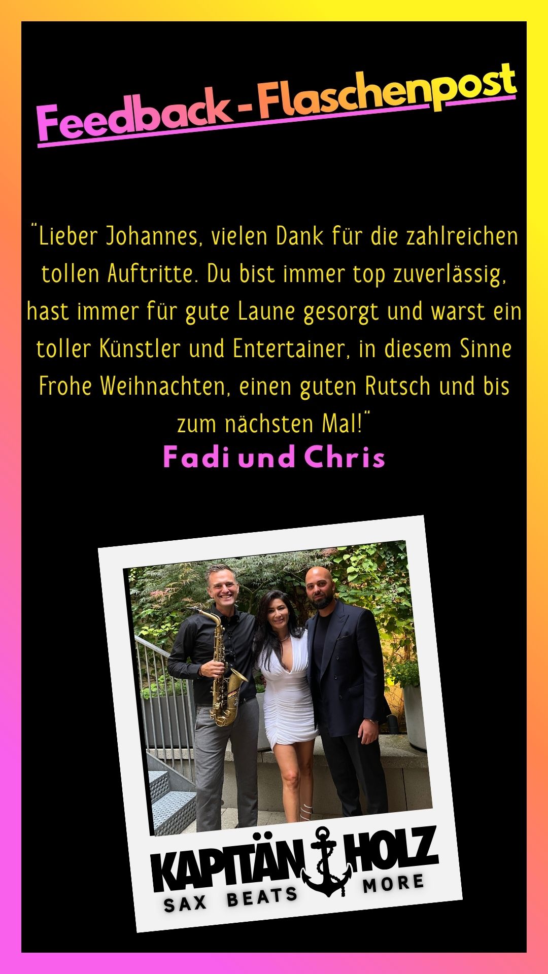 Neben Hochzeiten, Partys, Unternehmensfeiern, Clubnights, Sundowner und Volksfesten spiele ich seit einigen Jahren auch Straßenmusik und Auftritte für ausgewählte Wohltätigkeitszwecke. Vorwiegend gilt mein Engagement den Menschen und Organisationen, die sich für Kinder und deren Unterstützung einsetzen.